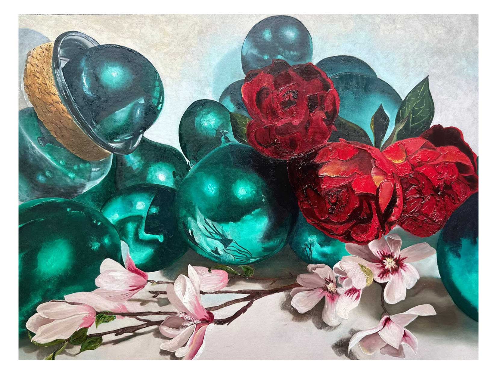 With each brushstroke, I have woven a still life that transcends the visual. The flowers, especially the roses, take center stage in this piece, carrying with them the most authentic essence of my being.